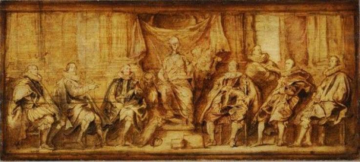 Die auf der wiederentdeckten Skizze dargestellte Figur entspricht der Person ganz rechts in der Grisaille-Komposition und gibt uns nicht nur einen genaueren Einblick in das Erscheinungsbild eines einzelnen Brüsseler Magistraten, sondern auch in van Dycks Arbeitsweise, die ihn von Ölstudien zu großformatigen fertigen Kompositionen führte.
