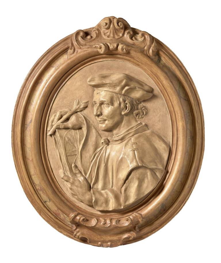 Allegories, religious motifs, genre scenes and portraits by Jacopo da Empoli, Felice Ficherelli, Francesco Furini and Onorio Marinari form the core of the collection. The presentation includes a striking ensemble of paintings by three generations of the Dandini family, a painter dynasty that made a name for itself primarily with female portraits. Several works from the MNHA collection will also be shown for the first time, such as Pier Dandini's Banquet of Cleopatra and Mark Antony or Ottavio Vannini's portraits of the evangelists Luke and John. The exhibition devotes a separate section to "Artists, Writers and Scholars", which sheds light on the intellectual history of Florence under the reign of the Medici Grand Dukes. Four polychrome stucco reliefs by Antonio Monauti illustrate baroque portraits of the Renaissance greats Michelangelo Buonarroti, Niccolò Machiavelli, Marsilio Ficino and the polymath Galileo Galilei.