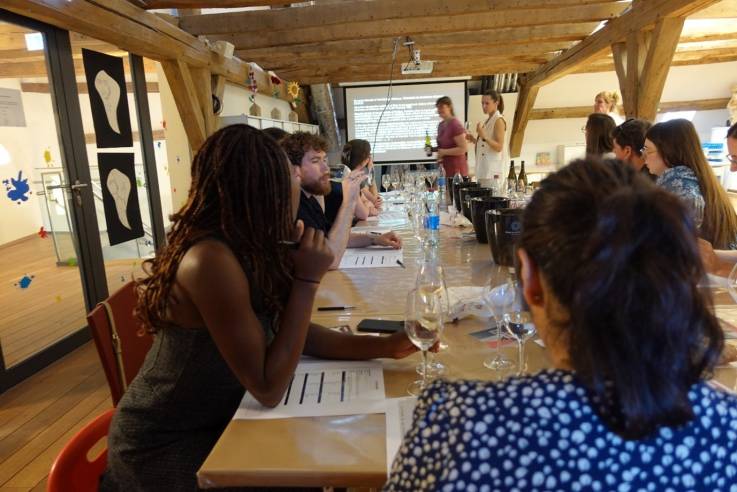There was also a moment of shared understanding when Doris Goethert paired a letter with a wine, based on similarities between the lives of an artist and a winemaker. The letter highlighted his urge to become a full-time artist, even though it meant taking risks and going against expectations. The wine came from a young winemaker who had made a similar choice – breaking with tradition to make his own wine instead of selling grapes to a cooperative. This sparked a group conversation about life choices, norms and what it means to take a leap.