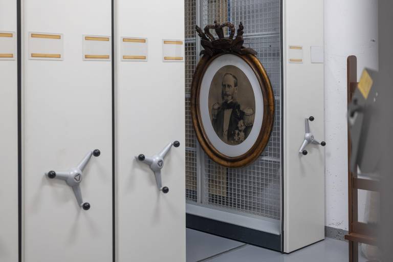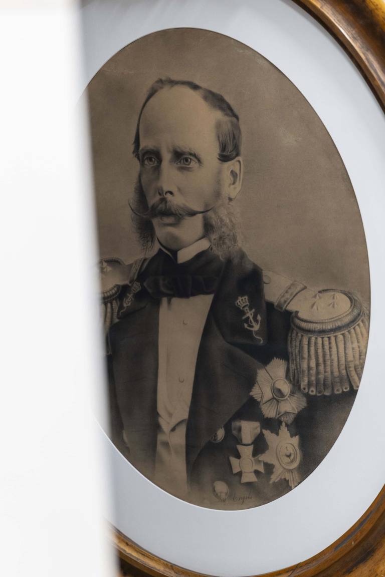 While researching the new exhibition Luxemburger Bundeskontingent. Militär und Gesellschaft im 19. Jahrhundert at the Musée Dräi Eechelen, the curators of the show came across an oval portrait of Prince Henry of the Netherlands (approx. 1878) stored in our museum’s depot. This work by the Luxembourgish artist Michel Engels (1851-1901) was originally mounted in an elaborate oval wooden frame.