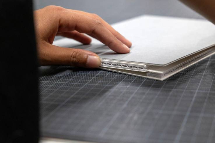 Facing the same problems we had a few years ago, we wanted to create affordable enclosures which are efficient, easy to make and don’t take up any added space in our drawer units. The solution we came up with was a standard-size enclosure, which could fit all paper formats, using materials we already had and left-over cuttings, which could be mass produced, easily made and wouldn’t take up too much room in our drawers. An added advantage is that this new storage system makes it easier to view documents without having to handle them directly.