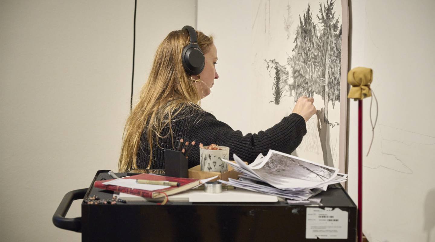 Ironically, the question she got asked the most was if she would be able to finish on time. People even seemed nervous about it, considering the largeness of her white panels and the thin pencils of oil-based charcoal that she was using up one by one. She however felt confident in her process, she emphasised that it was her who defined these conditions and that she also needs some restraints to funnel decisions. Without them, she laughs, she would probably still be working on it! Uppman embraces the performative aspect of this artwork rather than a perfect result. The process has become part of the artwork, and its outcome cannot be seen independently from its context of creation.