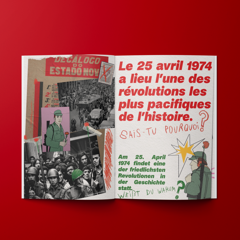 Tu as entre 10 et 18 ans et souhaites parcourir de manière accessible l'exposition «La révolution de 1974. Des rues de Lisbonne au Luxembourg» de manière accessible? Alors ce carnet est fait pour toi! Steven Cruz et Liliana Francisco, deux jeunes artistes d'origine portugaise établis au Luxembourg, ont conçu ce livret de manière didactique mais aussi ludique afin que tu enrichisses tes connaissances en histoire, lexique à l'appui. De plus, une série d'activités (ré-)créatives te sont proposées (origami, stickers à coller, formulation de ton propre avis, etc). Ton set de carnet/crayon est en service libre à l'entrée de l'exposition. Disponible en FR/DE sur papier, et en PT/EN par téléchargement digital. Bonne visite!