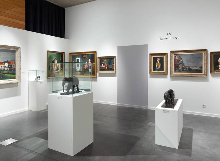 En 1956, le Grand-Duché de Luxembourg y est invité pour la première fois, à une époque où le Luxembourg commence à s'émanciper sur la scène politique inter- nationale. Conscient de la compétitivité qui règne à Venise, Joseph-Émile Muller (1911-1999), le commissaire en charge de la section luxembourgeoise et une des figures emblématiques de la scène artistique luxembourgeoise, décide de montrer quinze toiles de Joseph Kutter (1894- 1941) et sept sculptures d'Auguste Trémont (1892-1980), artistes à la renommée établie et dont Muller estime qu'ils peuvent se défendre à l'étranger.