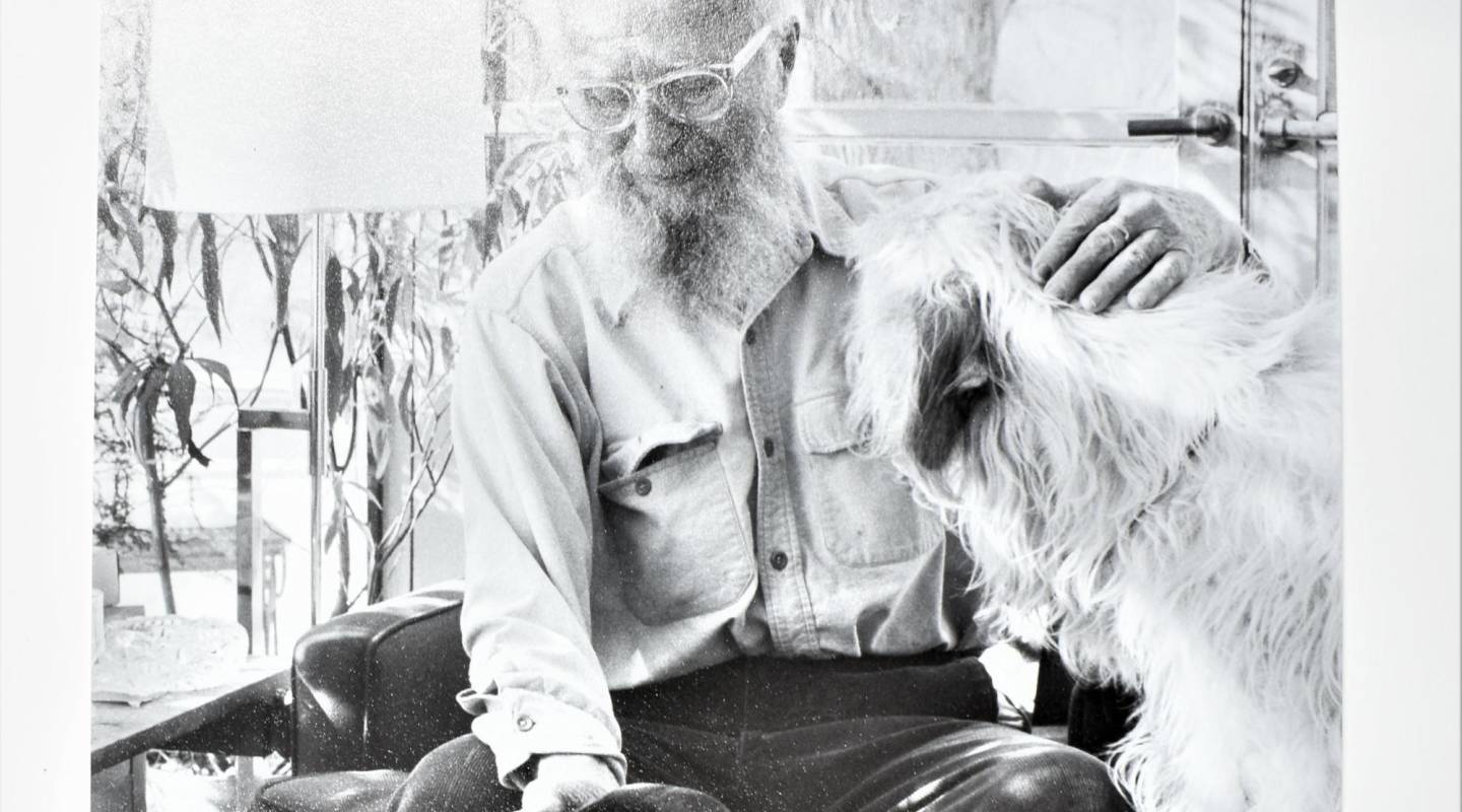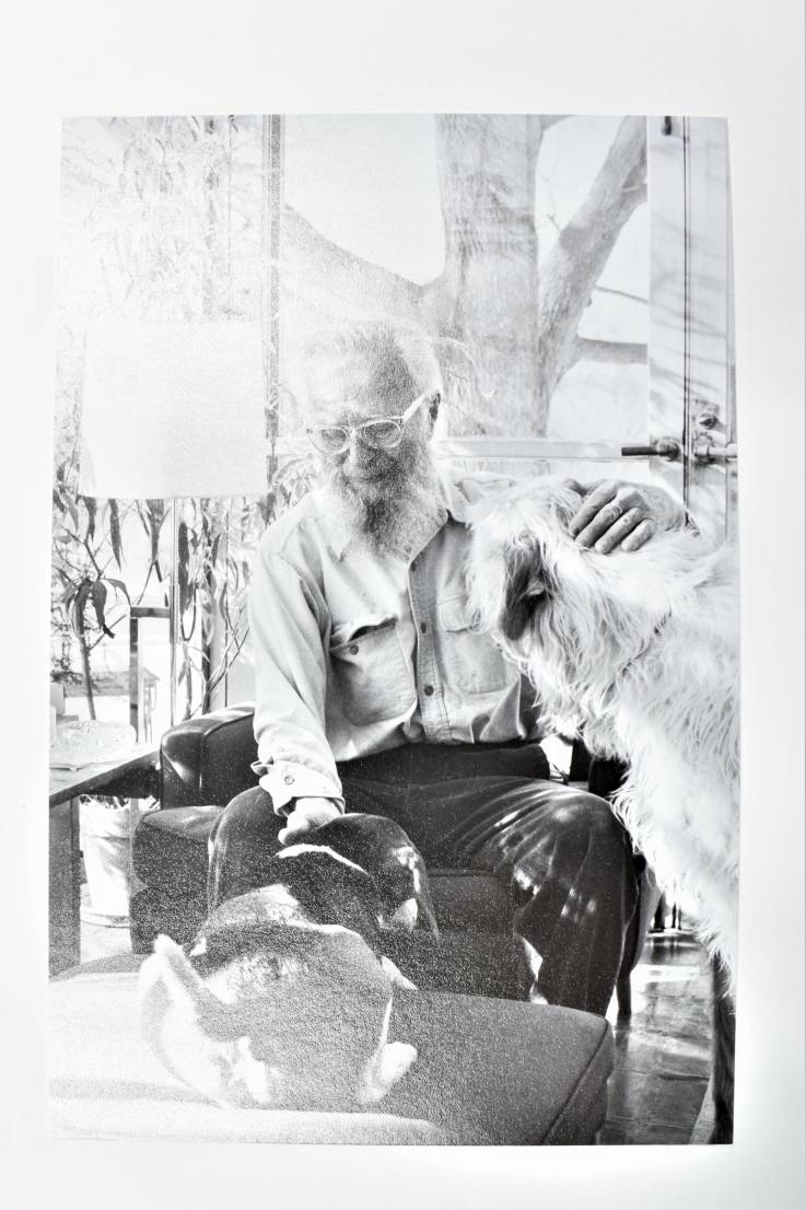Robert Elfstrom, Portrait de Edward Steichen avec ses deux chiens, fin années 1960–années 1970, tirage photographique, collection MNAHA