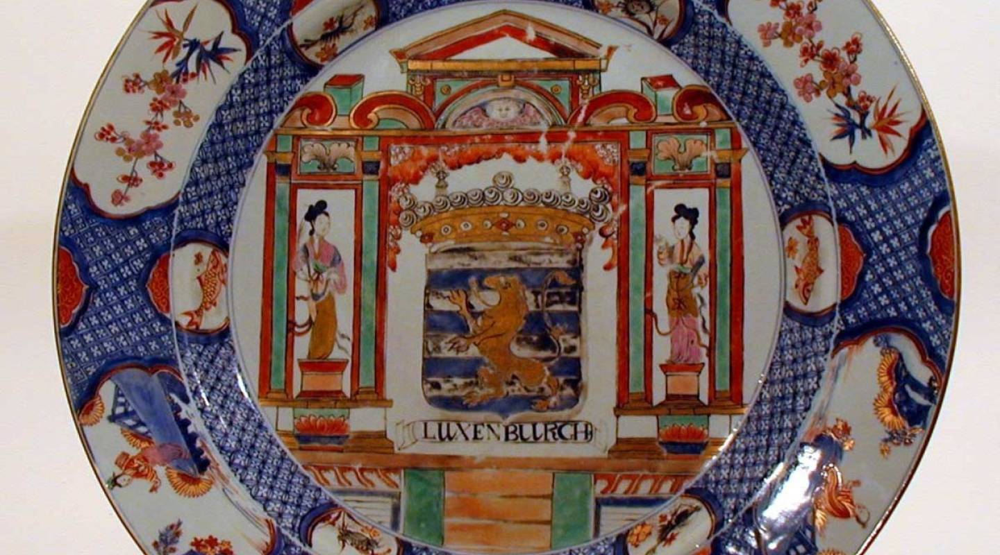 Faisant suite à de nouvelles acquisitions du Musée national d'histoire et d'art Luxembourg, cette exposition montre pour la première fois plus de cinquante plats en porcelaine de Chine ornés d'armoiries de territoires européens. Il s'agit d'armoiries de provinces et de villes des Pays-Bas, de la Belgique et du Luxembourg ainsi que celles des royaumes de France et d'Angleterre. L'exposition se propose d'éclaircir en partie le mystère qui entoure le choix des armoiries reproduites. Spécialement commandés en Chine pour le marché européen au 18e siècle, ces plats constituent des objets d'art hybrides qui illustrent le dialogue des cultures.
