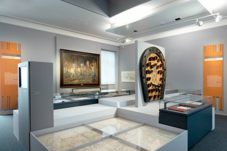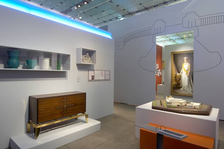 Que reste-t-il des participations nationales, créations éphémères par définition, dans un pays non organisateur comme le nôtre ? Avant tout une documentation écrite et une iconographie conservées dans les archives et les bibliothèques, plus rarement des œuvres et des objets d'art récupérés ou rachetés par les musées et des particuliers et, pour les évènements récents, divers films et témoignages oraux. Le MNHA a la chance de posséder plusieurs « vestiges » qui comptent parmi les plus spectaculaires qui soient, à savoir une série de tableaux de grandes dimensions du pavillon de Paris 1937 et une statue monumentale destinée au pavillon de New York 1939. Mais au-delà des objets et des expériences vécues, l'exposition pose la question de l'image que le pays a voulu donner de lui-même de 1851 à 2010.