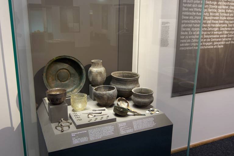 À côté du trésor de Neupotz, de nombreuses trouvailles spectaculaires sont présentées : par exemple les offrandes aux dieux et les bijoux du trésor de Hagenbach ou l'autel d'Augsbourg dont l'inscription décrit une victoire des troupes romaines sur les Germains en 260 après J.-C. De plus, l'exposition sera complétée par des trésors trouvés au Luxembourg et dans la Grande Région.